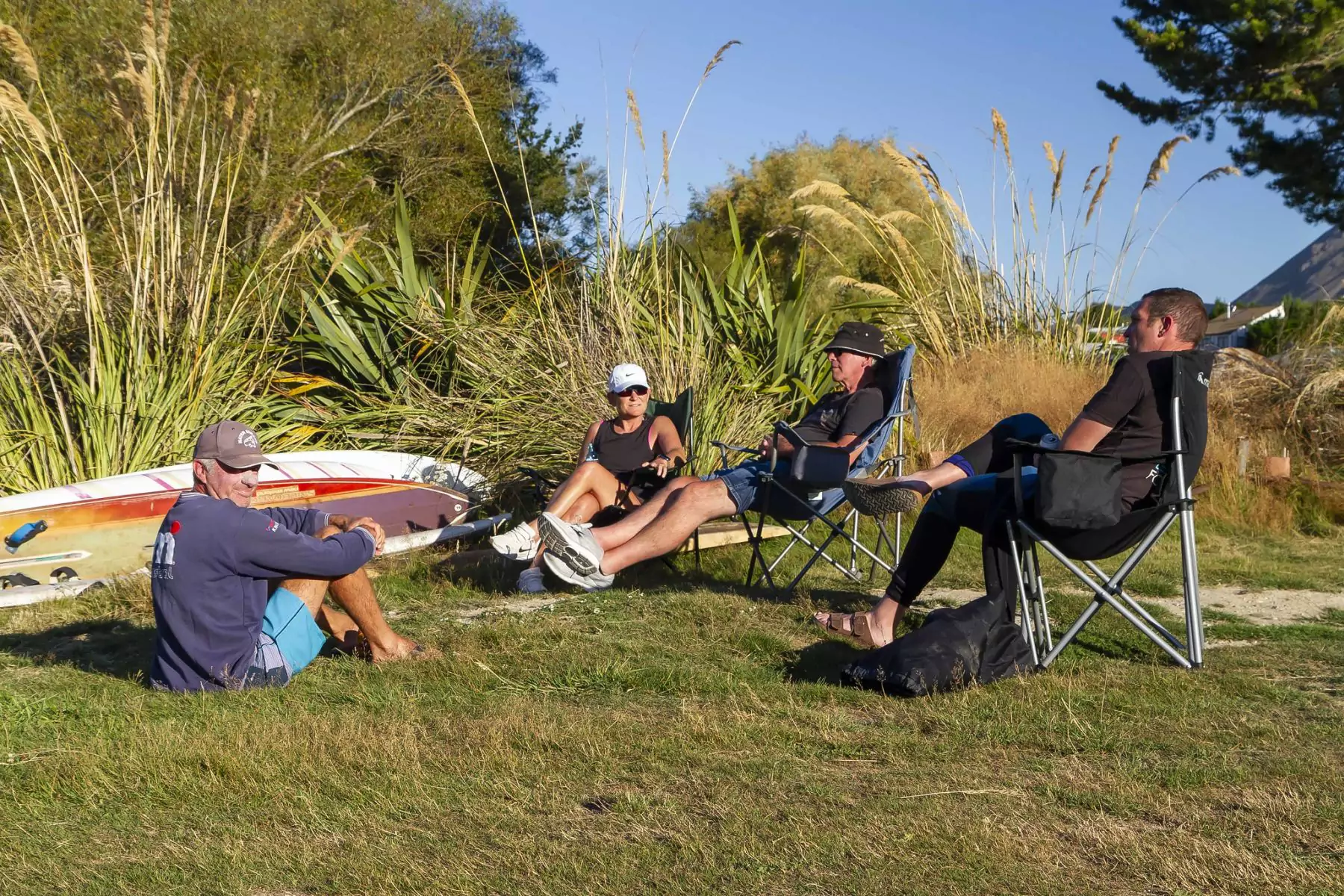 Friday afternoon, the small casual campsite started filling up with people arriving for the Womens Weekend. The wind cooperated and we had a fantastic weekend with lots of fellow water wahine (and a few men that snuck in ;-)). It was a great vibe with bike rides in the morning before the wind kicked in, then plenty of winging and windsurfing, followed by a delicious potluck dinner on Saturday in the Community Hall. Being a Womens weekend, the guys had to sort themselves out – which they did with their own little party at one of the baches.ย