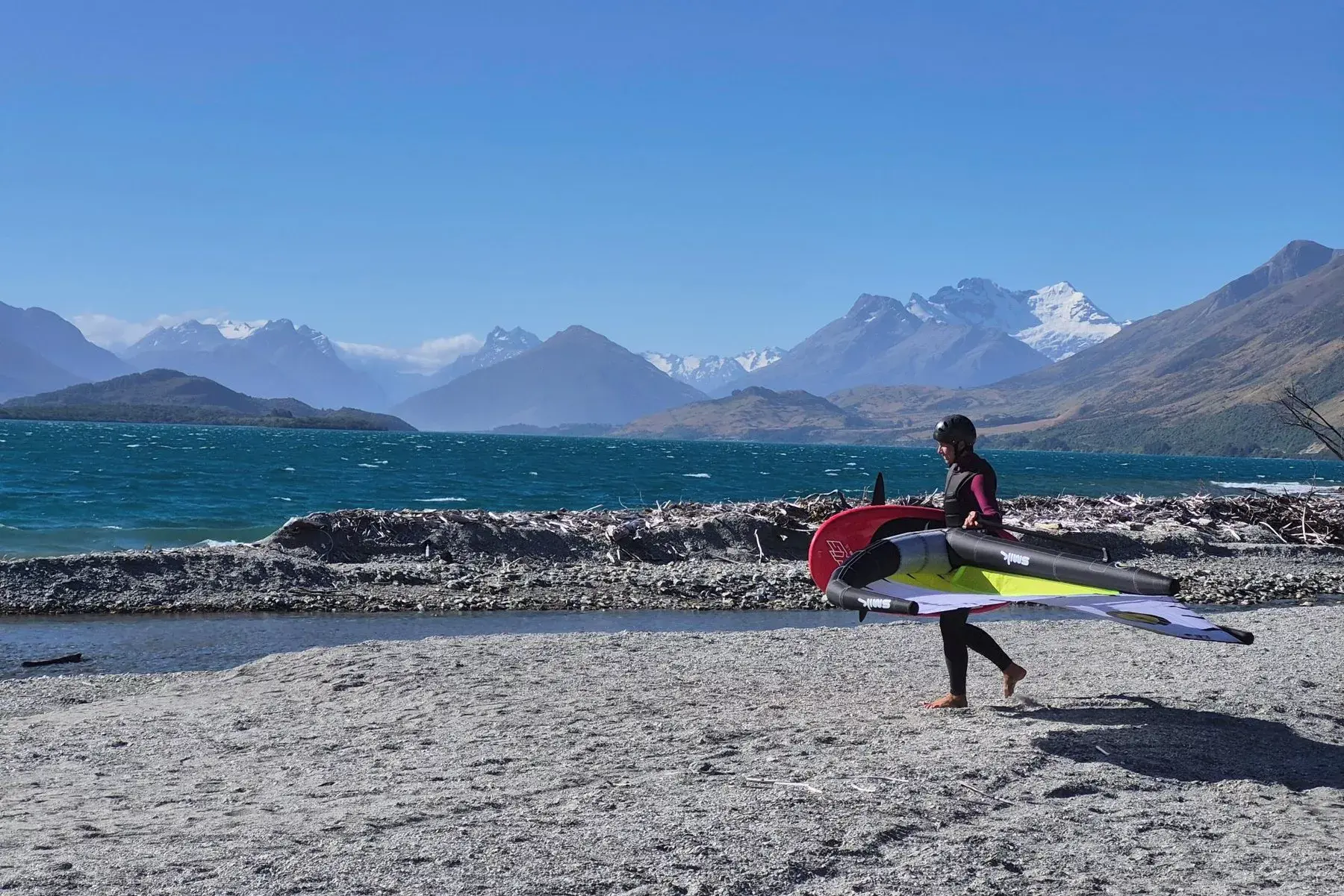 Tuesday started off calm, and our guests made the most of it by exploring the Mount Cook area or going on a bike ride around Twizel and the canals. Though when the Water Nomads call came in about a 1pm start time, everyone rushed back, not to miss a day sailing on Aviemore. We started with our bigger wings and kept on rigging down – by the end of the day all of the gear had been used, from 6m in the beginning to 3.5m wings in the end! It was still blowing when we packed up…..